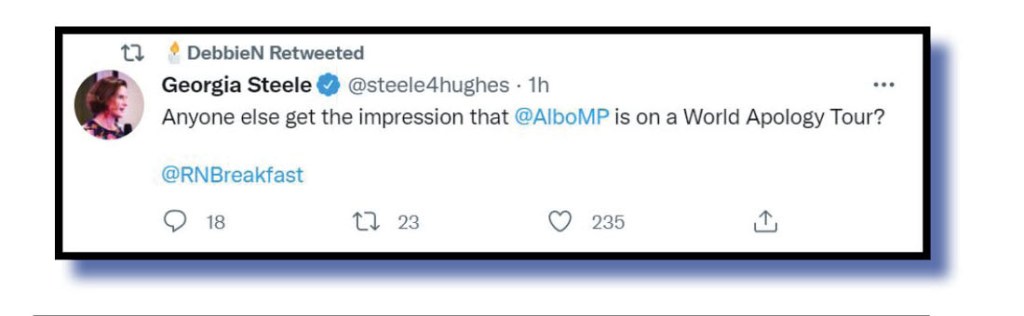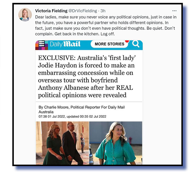 But before we run some excellent responses to those absurd accusations, there was another sickening attempt to damage Albanese while abroad: why was his girlfriend there with him! Hey!!! And more than just that! Do Australians really know what she is like!