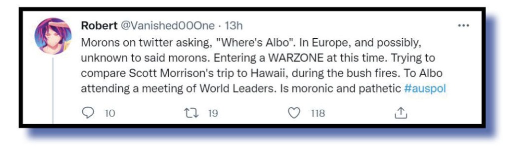 Showing just how desperate the devastated right of Australian politics has become, those shattered remnants launched a laughable @where’salbo? campaign to try to make capital out of Anthony Albanese staying overseas instead of rushing home to the flooded south-east coastline of Oz.