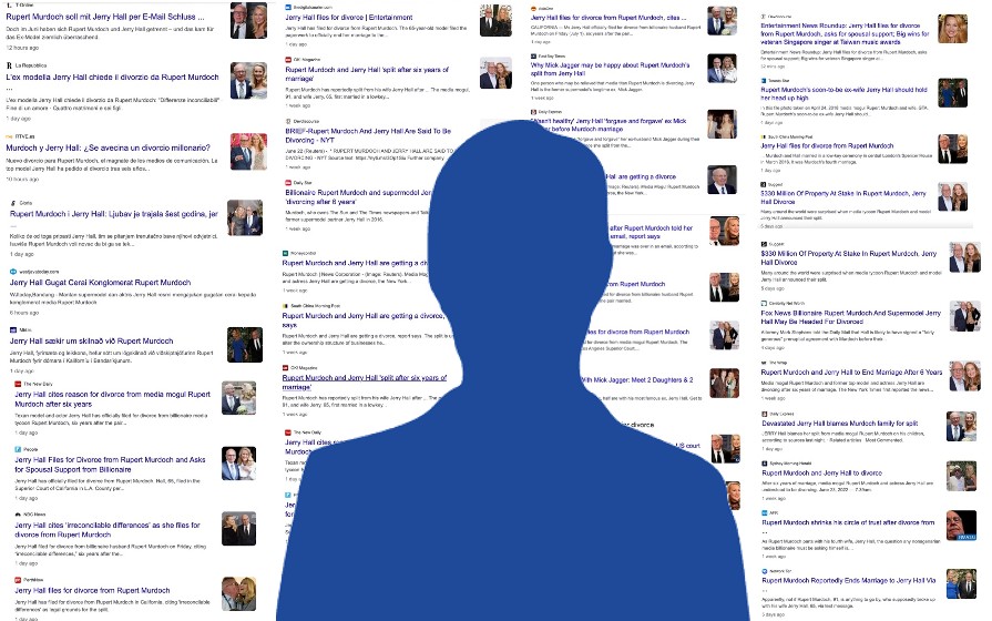 “Even a Spanish news site was reporting: ‘Nuevo divorcio para Rupert Murdoch, el magnate de los medios de comunicación. La top model Jerry Hall ha pedido el divorcio tras seis años de matrimonio, con un enlace que se celebró en 2016.’