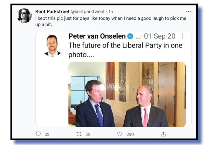And finally, because The Bug never likes to miss an opportunity to take the piss out of Peter van Onselen, Kent Parkstreet @kentparktweet reminded us of one of the professor of politics’ favourite predictions from 2020. No, not the one where he said two years ago that Scott Morrison would be re-elected!