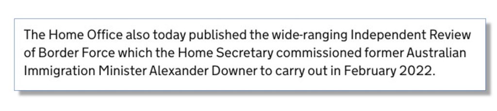 However, Lord Downer did isolate and read aloud one stanza in his report which he declared that the UK Border Force was “performing at a suboptimal level”.