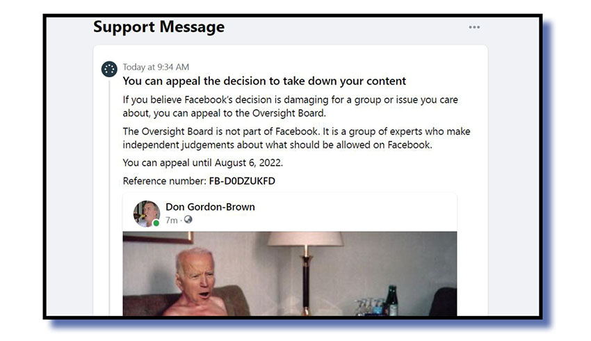 After the second ban, we were given a code to lodge an appeal with the OVERSIGHT BOARD, some “independent outside body” set up to look at such matters.