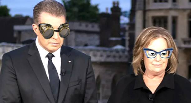 While most talk within the nation’s mainstream media at present has Channel 9’s Peter Overton and Tracy Grimshaw (pictured at top) red-hot favourites for failing to recognise British PM Liz Truss as she arrived at Westminster Abbey even though she was pictured in closeup for a good eight seconds on the TV coverage before a producer gave them the heads up, The Bug‘s Media Glass House staff suspect they don’t have it in the bag just yet.