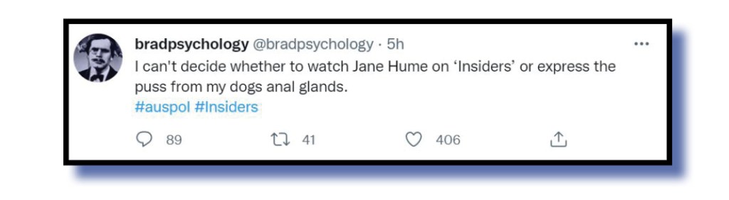 We’re going to assume bradpsychology @bradpsychology gave Insiders a miss…
