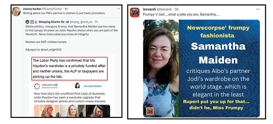 Here’s what happened. We let Twitter outrage frame our original view of what Maiden was trying to achieve when she ran that online newscorpse piece on the cost of the fancy, designer clothing Jodie Haydon, Prime Minister Anthony Albanese’s girlfriend has been wearing of late.