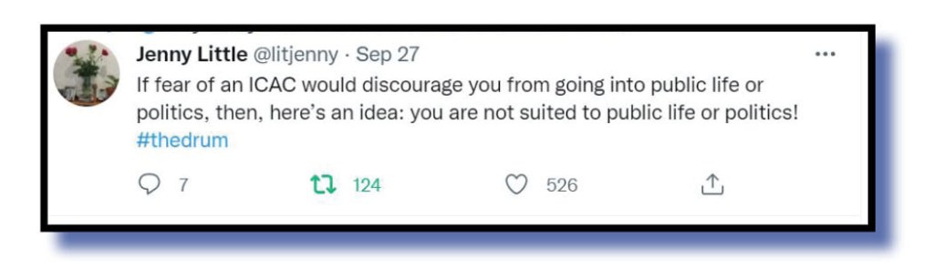 The looming National Anti-Corruption Commission also sparked these responses from Jenny Little @litjenny and JRB @JohnBelchamber….