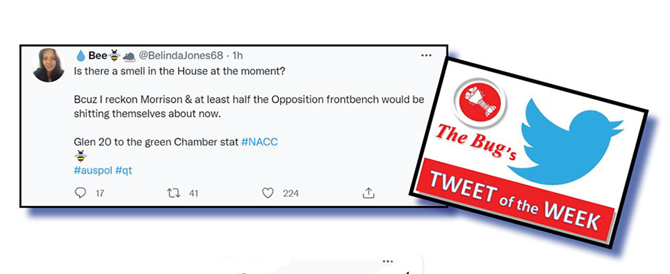 With such scatological flair and a dig at our favourite pollie villain, Bee @BelindaJones68 was always a very good chance of saluting our tweet-of-the-week judges – and she has!