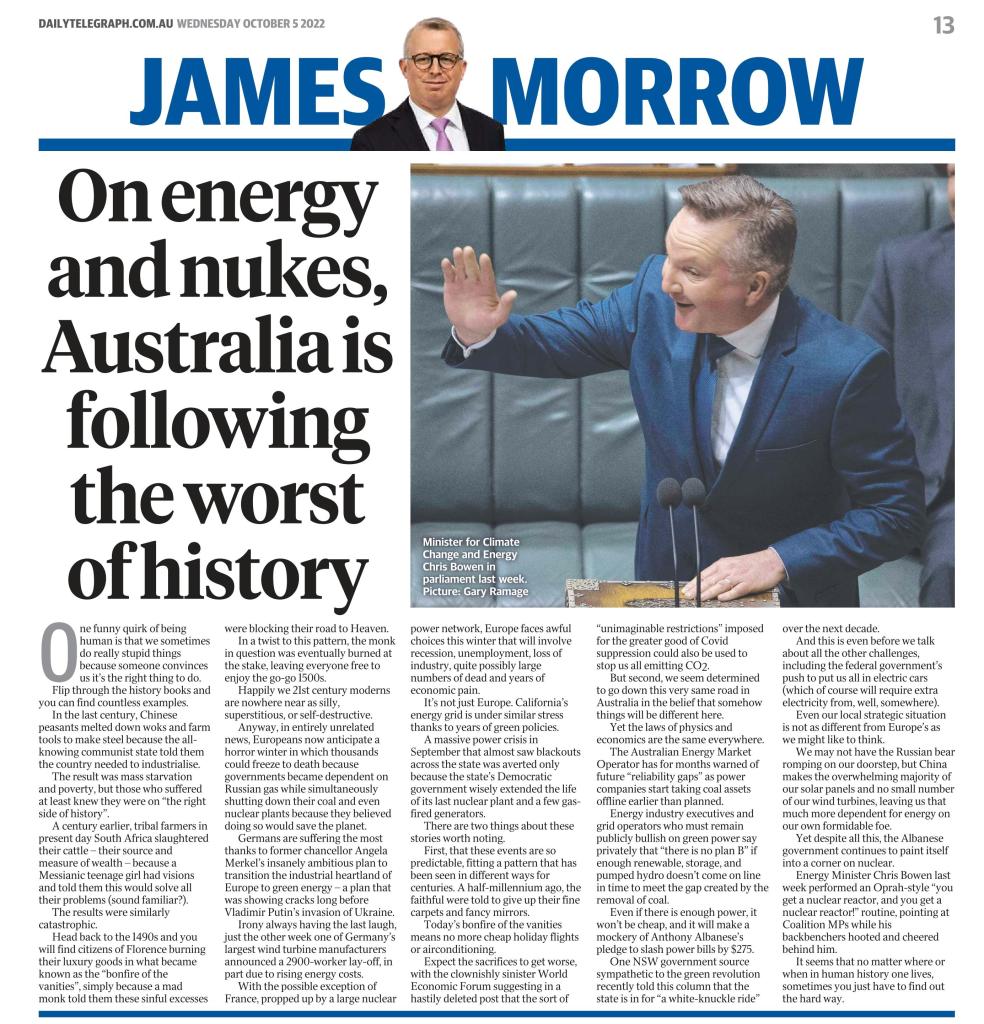 Morrow’s column is basically a call to embrace nuclear power, in line with his fellow Murdoch media columnists. (below)