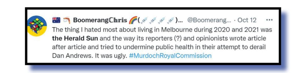normboy562 @normboy562 also roped in the ABC for criticism over media coverage of Victorian politics, suggesting that it’s not just the Herald Sun and 3AW at fault.