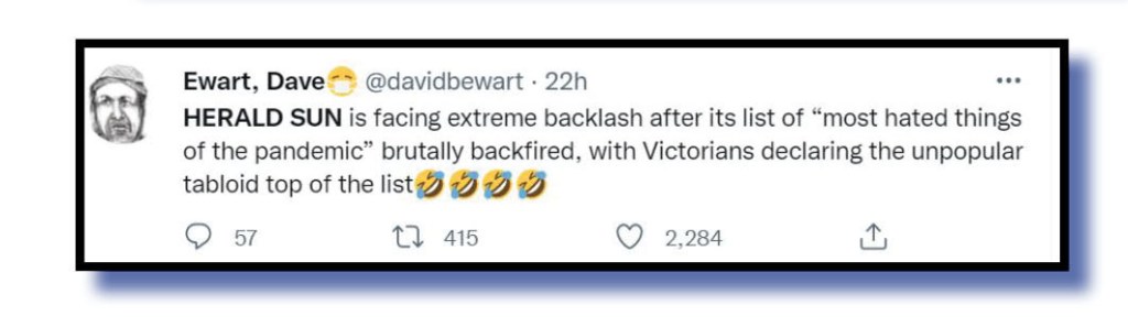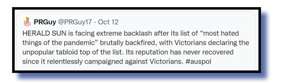 The former newspaper and now LNP shill also declared that it wanted the good citizens of Victoria to guide it on what issues should be blowtorched up to election day on 26 November.