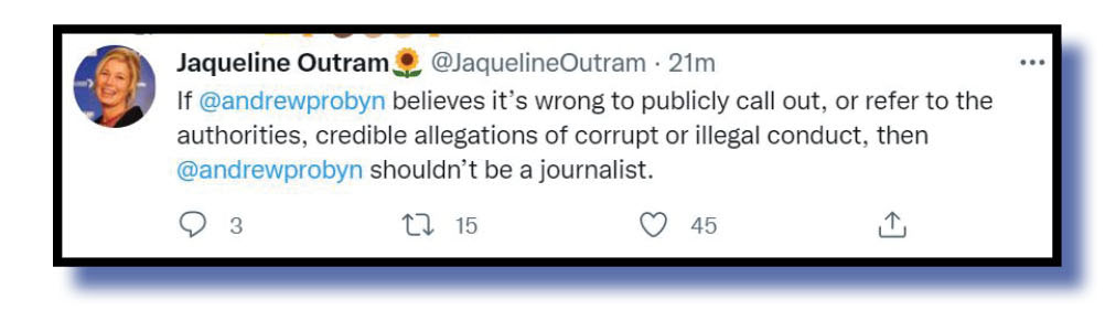 Sticking with the ABC and its sometimes-maligned political reporters, Jaqueline Outram @JaquelineOutram had this to say about Andrew Probyn’s very questionable question to Mark Dreyfus at the National Press Club last week. She was not alone.
