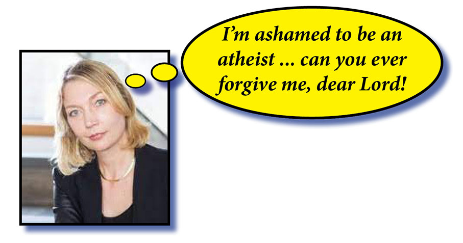 By essay’s end, are we any more enlightened as to the source of PPM’s shame? We do at least know that while PPM is now ashamed to be an atheist, she remains a committed believer in non-believing. She’ll stubbornly stay an atheist but is now more aware of the need to show more humility and tolerance, attributes that your average atheist apparently lacks.