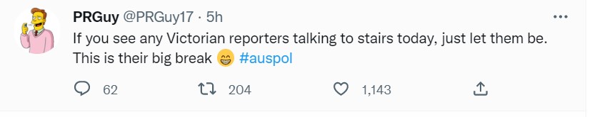 Our tweet of the week judges couldn’t go past the contribution from famous, multi-Walkley award-winning scribe Tony Koch….