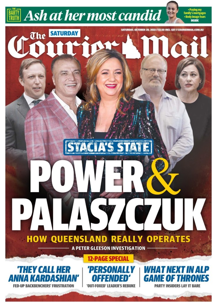 In his spare time Gleeson also appears on Sky News After Dark and writes political columns and special wraparounds for The Courier-Mail.