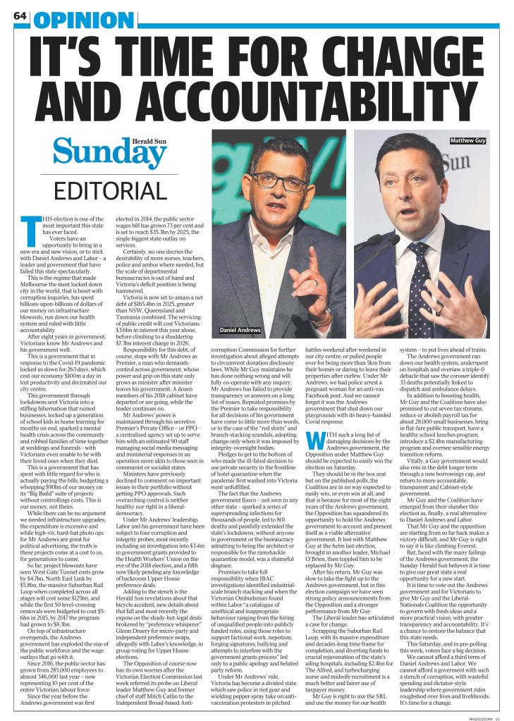 Of course the full-page editorial directs voters to turf out Andrews and Labor and install Guy and the Libs.