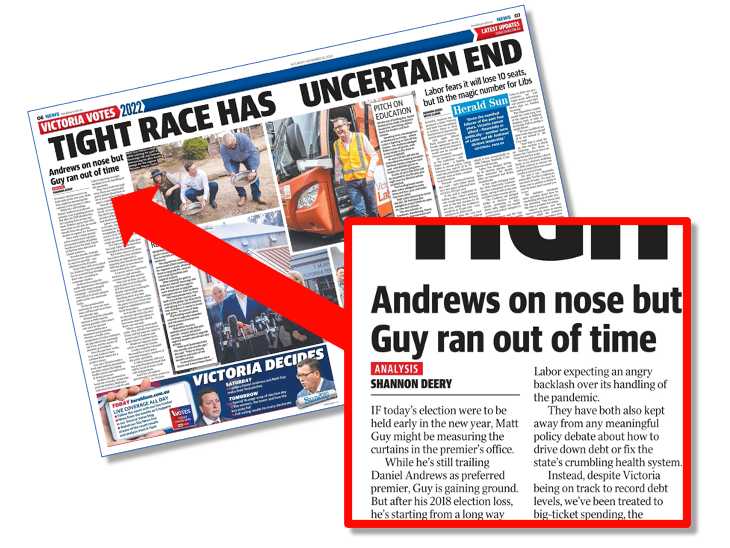 The Victorian Liberal Party’s advertising agency, the News Crap Australia daily turdbloid the Herald Sun, has this morning laid out its excuse for failing to have its client elected at today’s state election.