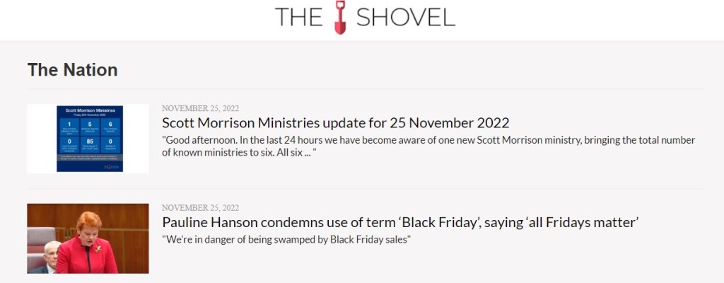 Then yesterday, johnny-come-lately satire sites, The Shovel and The Chaser, regaled their readers with their offerings on the same topic.