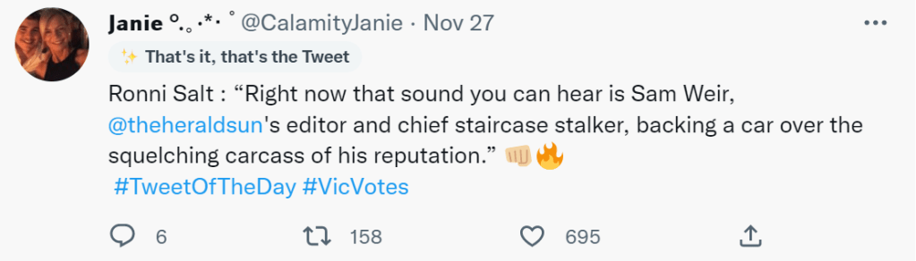 Once again, the brave citizen journalists on Twitter proudly led the way in reporting on the Victorian state election.