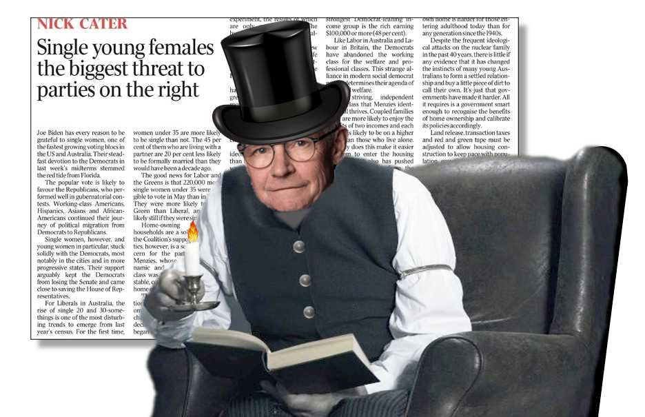 Oh, don’t get them wrong. They unanimously gave the November award to columnist for The Australian Nick Cater. All other contenders were immediately cast aside once they saw his column on November 14 lamenting the rise of single young females.
