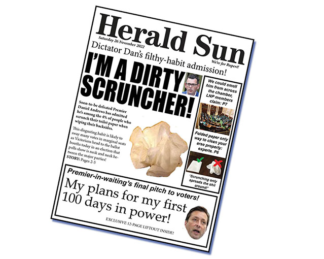 In an exclusive interview with Australia’s No1 family netzine, Weir (pictured below right) showed The Bug some of the scoops the paper had planned to run in the dying stages of the campaign, including the election-day cover shown at top and below.