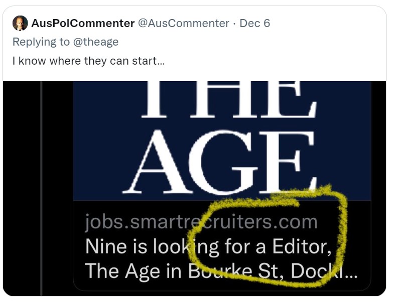 Looks like The Age has the work cut out for it it finding the right person to helm the masthead moving forward, as Julia Gillard was wont to say.