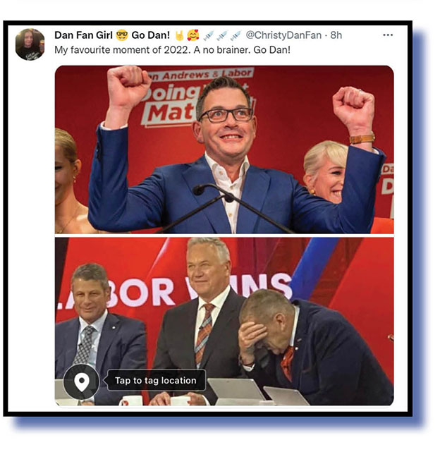 And staying on Victorian matters, we are indebted to Dan Fan Girl for reminding us of one of the great moments of 2022 (at top and below).