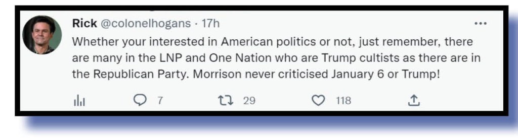 Hey, while we’re talking about rightwing nut jobs, let’s say hello to Prue MacSween who shared Alan Jones’ grief that no-one’s listening to his one view anymore. May the likes of Prue, The Parrot and the Mad Monk never woke up to the news their time has passed.