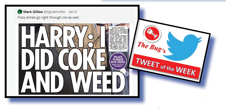 Phew! Anyway, you can possibly see from that little diatribe that our tweet-of-the-week judges couldn’t go past Mark Gillies’ lovely little pisstake (above and below) on one the UK raboids’ take on what the Ginger had to say in Spare.