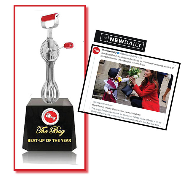 A tweet and online plug from The New Daily have been selected as worthy early joint contenders for The Bug‘s uncoveted Media Glass House Mainstream Mediocre Beat-up of the Year award for 2023.