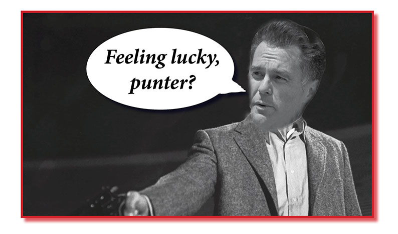 In all the excitement, I must confess I’ve forgotten how many shots I’ve fired off here. Maybe you might still be unsure about whether to take the safe $1 shot or cleaning up bigtime with the six? Well, are you, punter? Feeling lucky, punter?