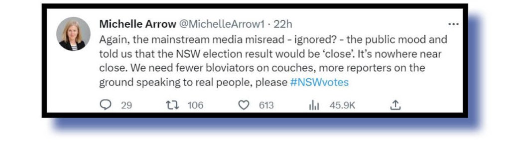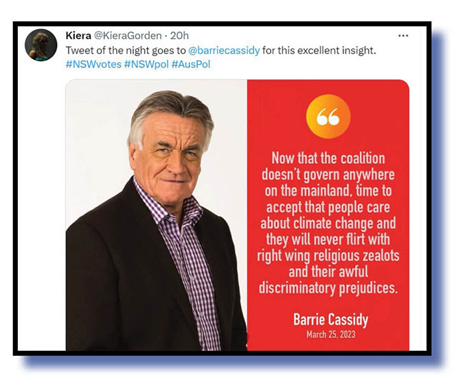 So, were our Tweet-of-the-Week judges unsure about highlighting entries this week that suggested Murdoch’s influence has only now, finally, been dealt a death blow with the NSW state poll result? Of course not! A belated welcome to the club to youse all!