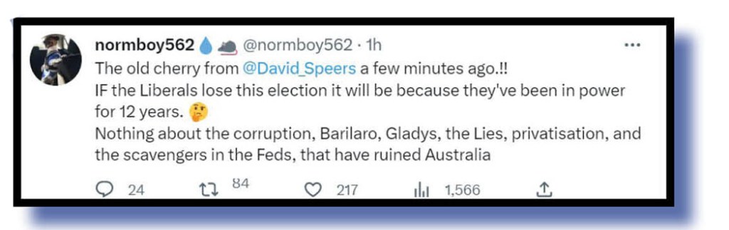 This weekly column rarely goes past without some Tweet having a dig at David Speers so here’s normboy562.