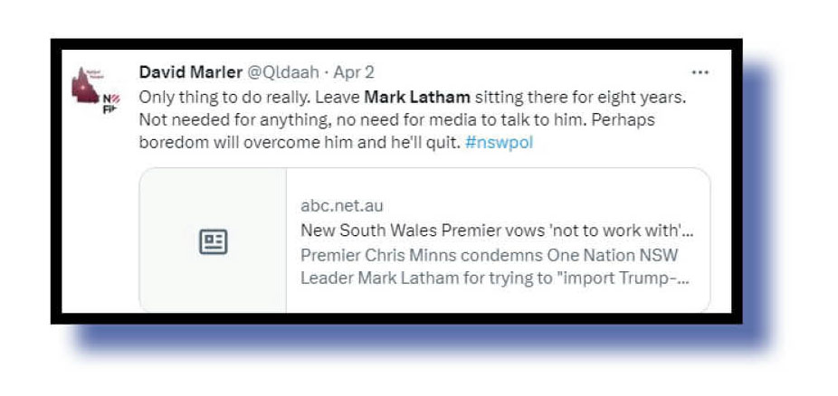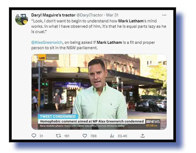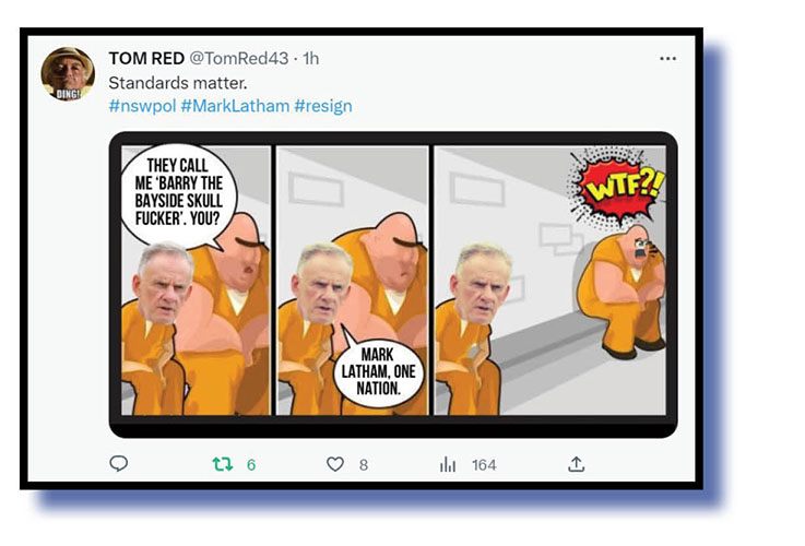 If the shock result in the Aston by-election hadn’t dominated our first look yesterday at tweets of the week, Mark Latham certainly would have over his homophobic and stupidly childish comments about a NSW gay politician.