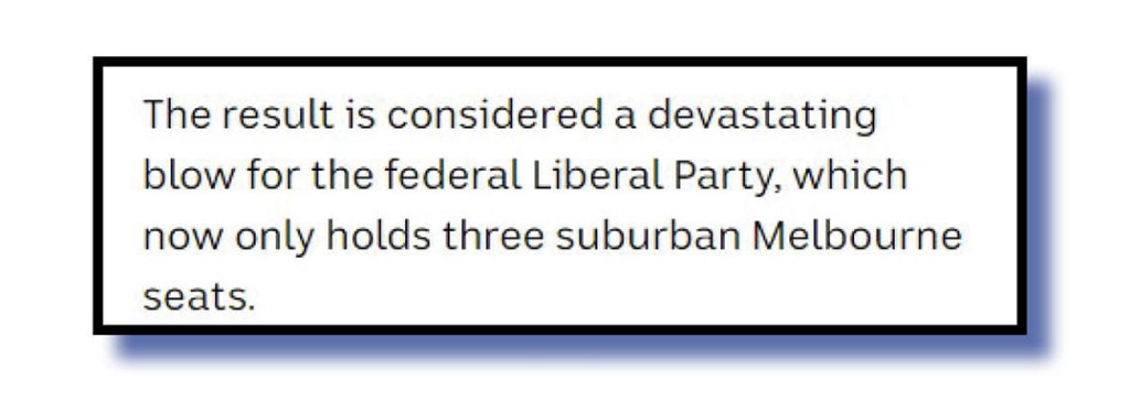 The last time Mediocre Bytes looked – in fact, every time we’ve looked since the Aston by-election just over a week ago – the Liberals now hold TWO federal seats in Melbourne.