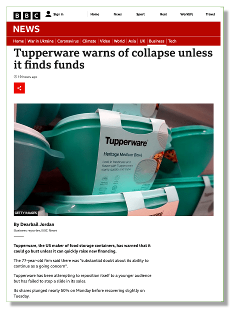 US-based food storage container maker Tupperware has announced a radical plan it says will stave off what was otherwise forecast to be imminent bankruptcy.