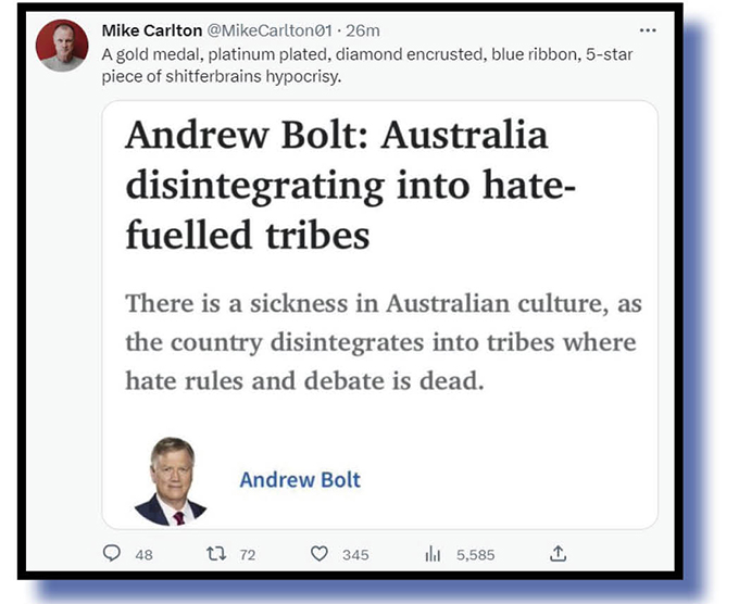 And we suspect Mike Carlton might have had how The Voice debate is developing in mind when he got stuck into Andrew Bolt. Oh, Mike, we just love how you use words.