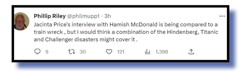 Speaking ill of Jacinta Price, Phillip reminded us that train crashes are not the sole preserve of her leader.