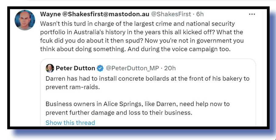An avalanche of Twitter criticism was levelled at the dog-whistling efforts of these two, and Dutton’s approach in particular to how he practises politics. Sadly, it’s the only way he knows.