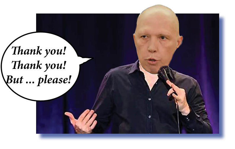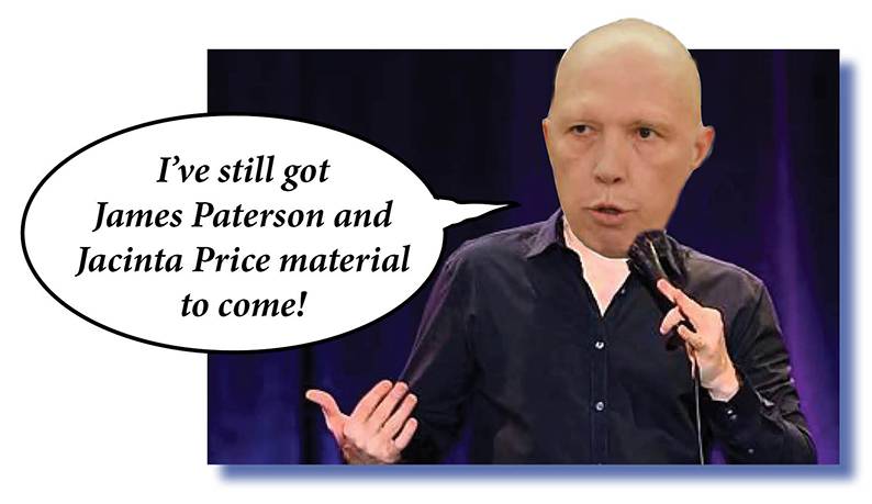 The moment we saw and heard Peter Dutton announcing his shadow ministry reshuffle last Tuesday, we realised we had a natural-born standup comic in our midst.