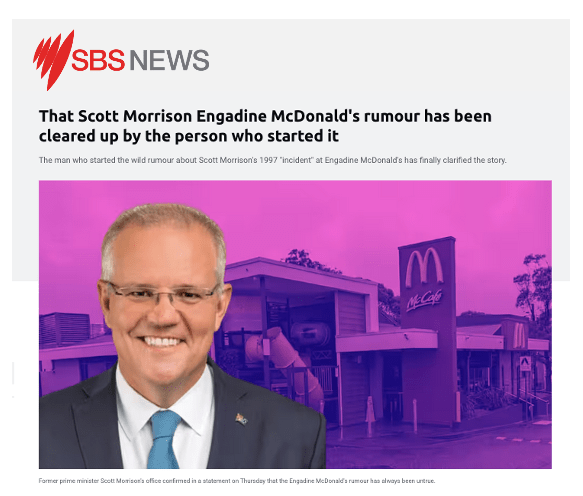 News reports last week said the man who first started spreading the story via social media in 2018 after Mr Morrison became prime minister had admitted it was a fiction. (below)