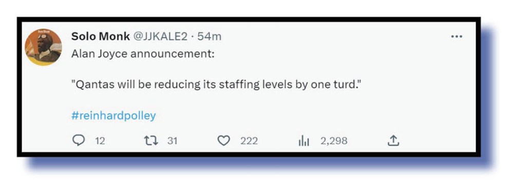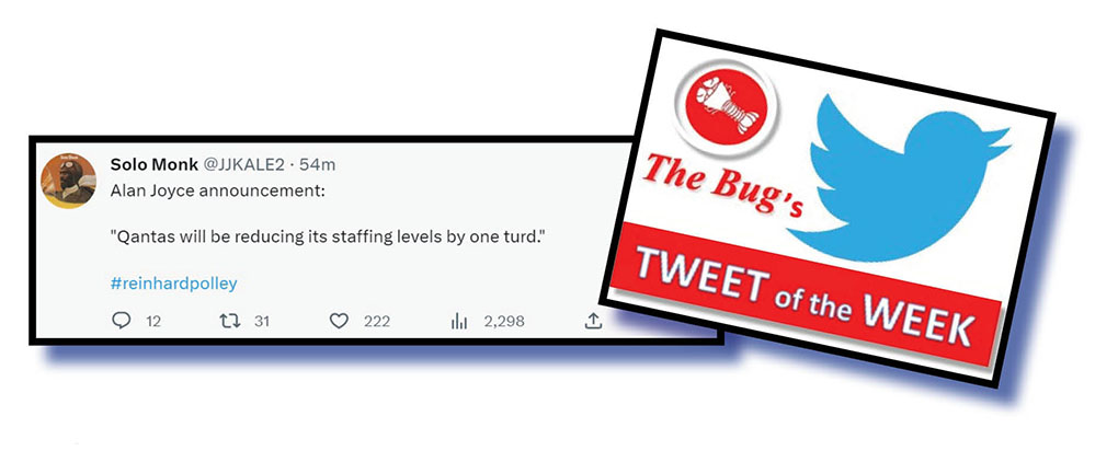 News that Qantas CEO Alan Joyce was leaving the position later this year provided this week’s The Bug tweet of the week winner.