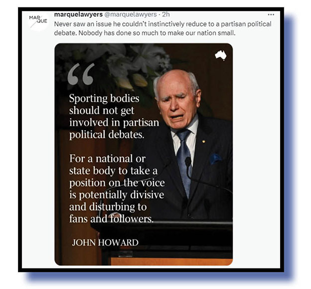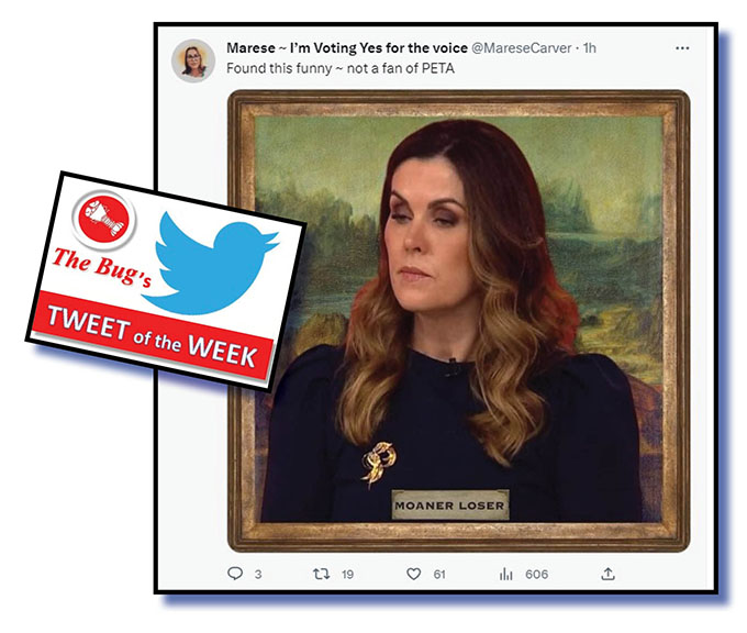 … while Jo Mills has obviously been following that ACT royal-commish-type examination into how all sides behaved, particularly in the lead-up to the Bruce Lehrmann rape trial. Another tweet suggested only one juror was hanging out for an acquittal; possibly a chap clutching dodgy material on the incidence of false rape accusations? Hmmm. We still think Lehrmann should slink off into the distance and lie low for a good while. Some decades would be sensible.