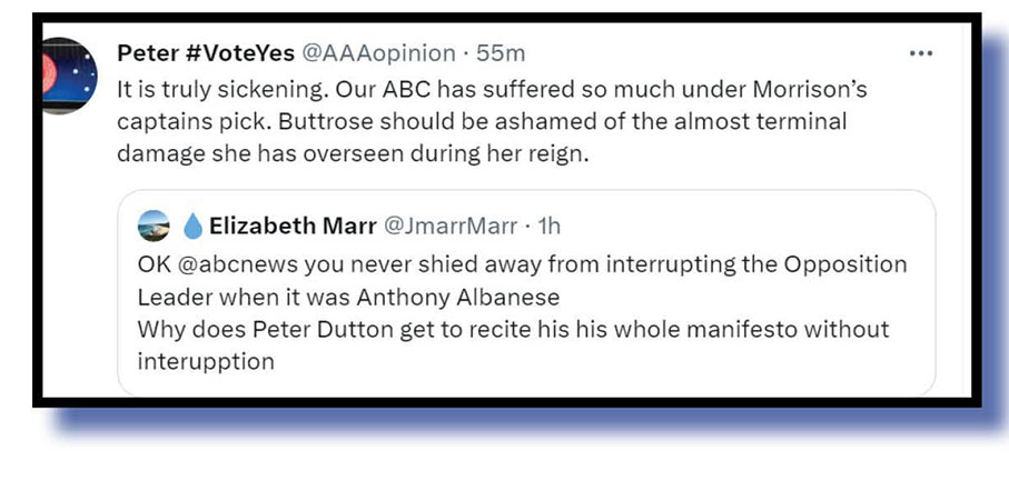 Peter #VoteYes and Elizabeth Marr shared their views on perceived ABC bias..