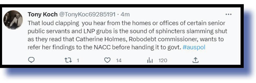 It’s amazing how those dreadful, stinking, rotten Twitter sewer rats saw the absolute need for Australia to rid itself of Morrison, yet the mainstream mediocre, almost to a man and woman, pushed for his return. The citizen journalists on Twitter doing the job the MSM has abrogated.