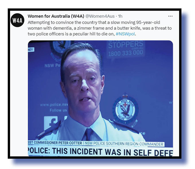 And to finish off on a totally difference subject, we just loved the wry comment from Women for Australia (W4A). A peculiar hill to die on, indeed.