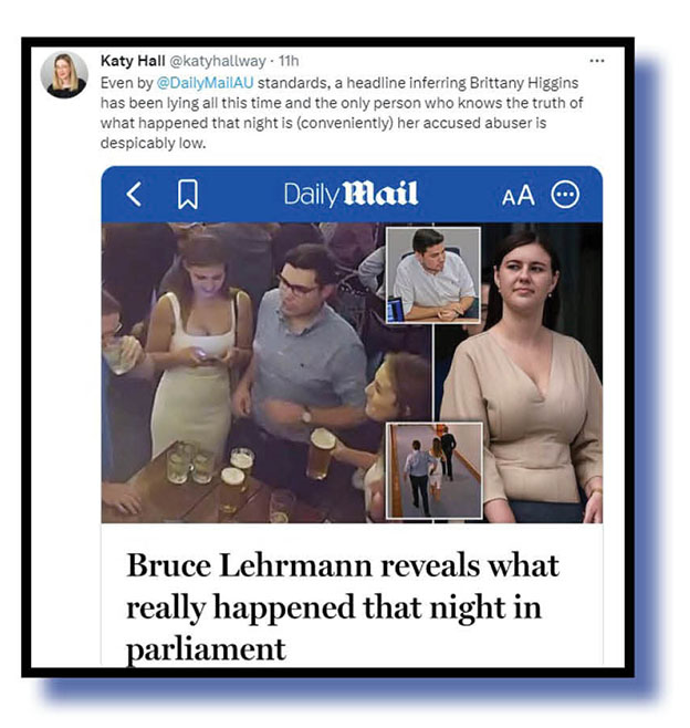 Many tweets addressed other very relevant issues such as why that couch was steamed cleaned so quickly, why Higgins was promptly shunted west to work with Michalia Cash and why didn’t Lehrmann have his say at court if he was totally, completely, absolutely, innocent – despite being in his rights to remain silent – but enough of that for now.