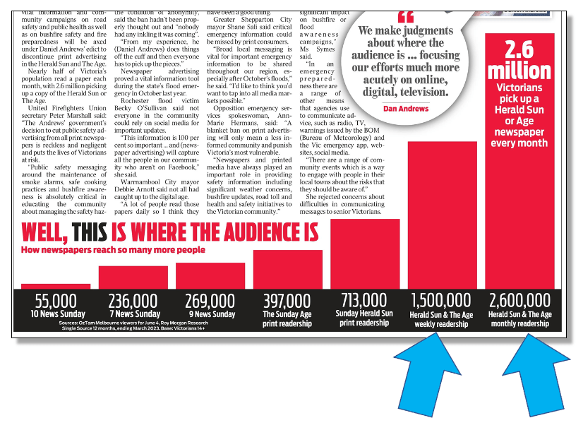 A leading journalism academic says News Crap Australia’s tactic of attacking Victorian Premier Dan Andrews for withdrawing government advertising from print newspapers has “let the cat out of the bag” about the Murdoch media’s “pathetically low” circulation figures.