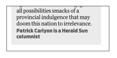Mr Carlyon is a columnist for the daily turdbloid totally ignored by most Melbourne residents, The Herald Sun.