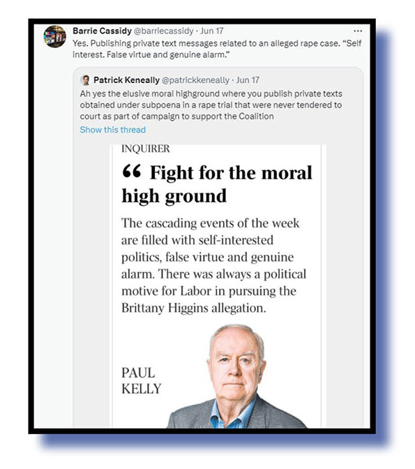 Barrie Cassidy and Patrick Keneally in this exchange got stuck into one of Sheridan’s far-right-wing mates at The Australian, the deplorable Paul Kelly who many decades ago seemed quite reasonable until he was well and truly ruperted by the Newscorpse gravy train.