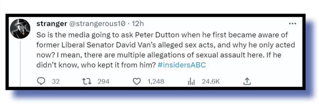 While we all continued to scratch our heads over what on earth was really wrong with a political party trying to capitalise on the possible coverup of a possible serious sexual assault on Capital Hill by the other side of the aisle, the Opposition started last week with a monster politicisation of the very issues they deplored being politicised. But as tweets from Brad Barnes, etc, etc, and Dr Sheep Person Podge show, it didn’t turn out all that well for the LNP.